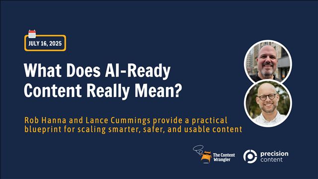 This educational webinar is brought to you by The Content Wrangler and is sponsored by Precision Content, a consulting firm that helps global companies decrease time to market, create AI-ready assets, and improve customer experiences through structured content methodologies and systems.