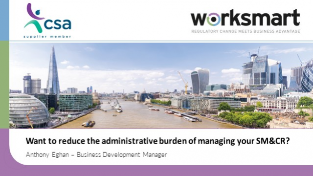 This is where Worksmart come in…… and this webinar (in collaboration with the CSA) will explain how you (Compliance, HR, Legal and IT Managers) could be using our 2019,2020 ACQ Award-winning SM&CR solution to meet the relevant PRA / FCA regulations.