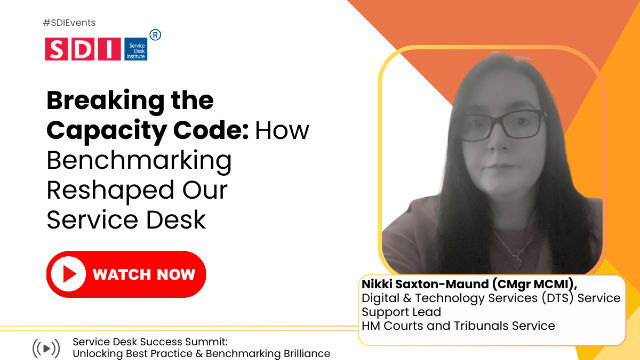How do you know when your service desk has reached its limit—before it breaks? This session explores how I used SDI benchmarking and Erlang modelling to calculate our true capacity, identify performance gaps, and build a smarter resourcing strategy. I'll share not only the math behind our model but also the cultural and operational shifts it has enabled. If you're still planning headcount by gut feel or best guess, this session will show you a better way.  Key Takeaways: - Benchmarking turns metrics in to meaning It’s not just about the numbers it’s about the context. SDI benchmarking helped us to understand where we stand, where we excel and where we need to improve. - Capacity isn’t just a number, it’s a strategy With the right model we have been able to align resources to demand while avoiding burnout. We have also been able to justify strategic hiring decisions with confidence. - You don’t need perfect data to start. We began with some real data, but we also had to use estimates, refined our assumptions, and adapted as we learnd. Despite data gaps benchmarking still provided valuable insights that led to meaningful improvements and more informed decisions.