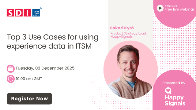 As organisations adopt experience data to optimise and enhance IT services, one critical question remains: how do we ensure the experience data truly improves the employee experience? In this webinar, Sakari Kyrö from HappySignals explores how experience data—real feedback from end-users—can be used for better IT decisions. By aligning AI behaviour with what users actually experience and expect, organisations can avoid common pitfalls of automation and build systems that drive satisfaction, reduce friction, and deliver real value. Join us to discover how bringing human experience into ITSM leads to better outcomes in day-to-day operations—from faster resolutions and fewer escalations to higher employee satisfaction and trust in digital services.